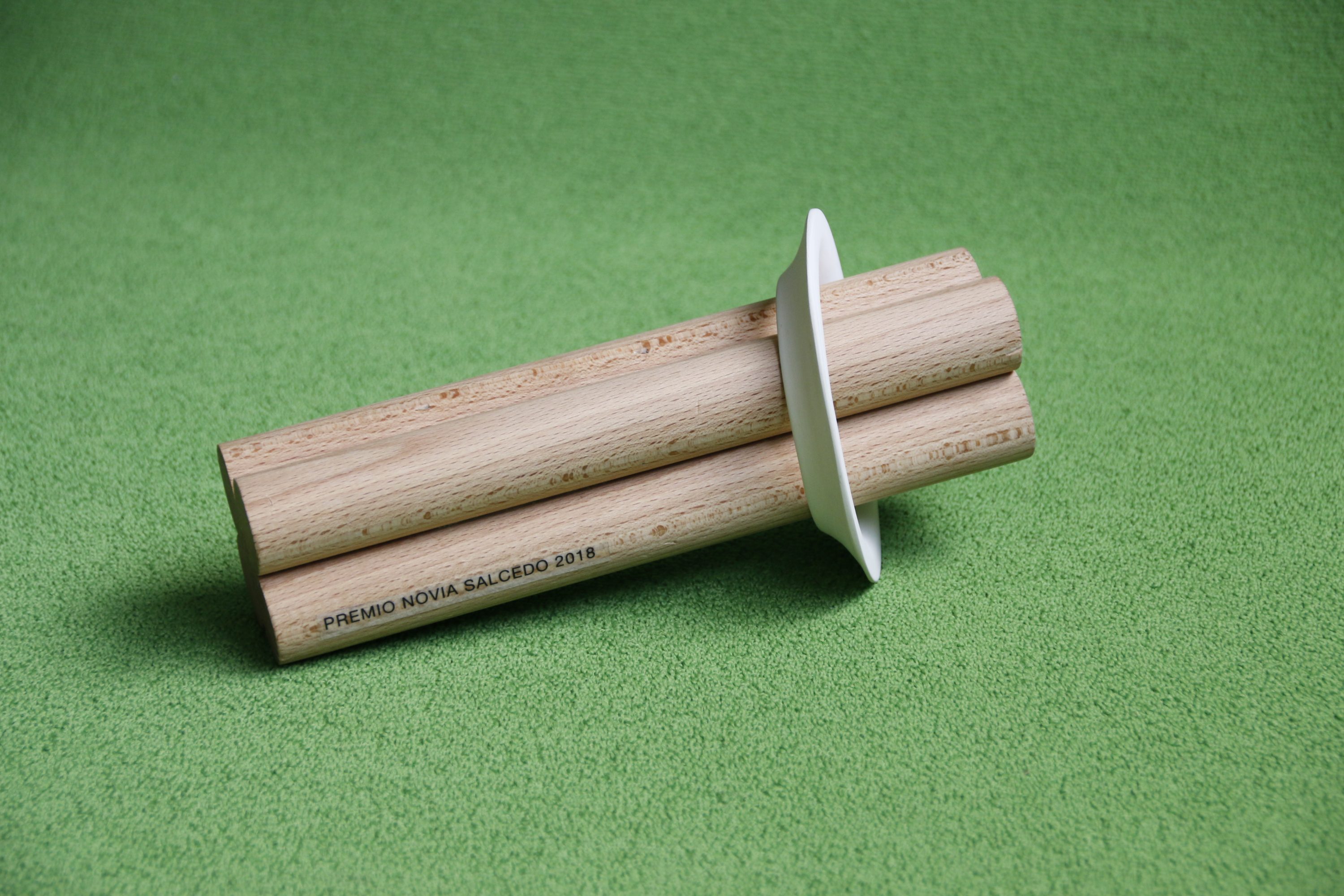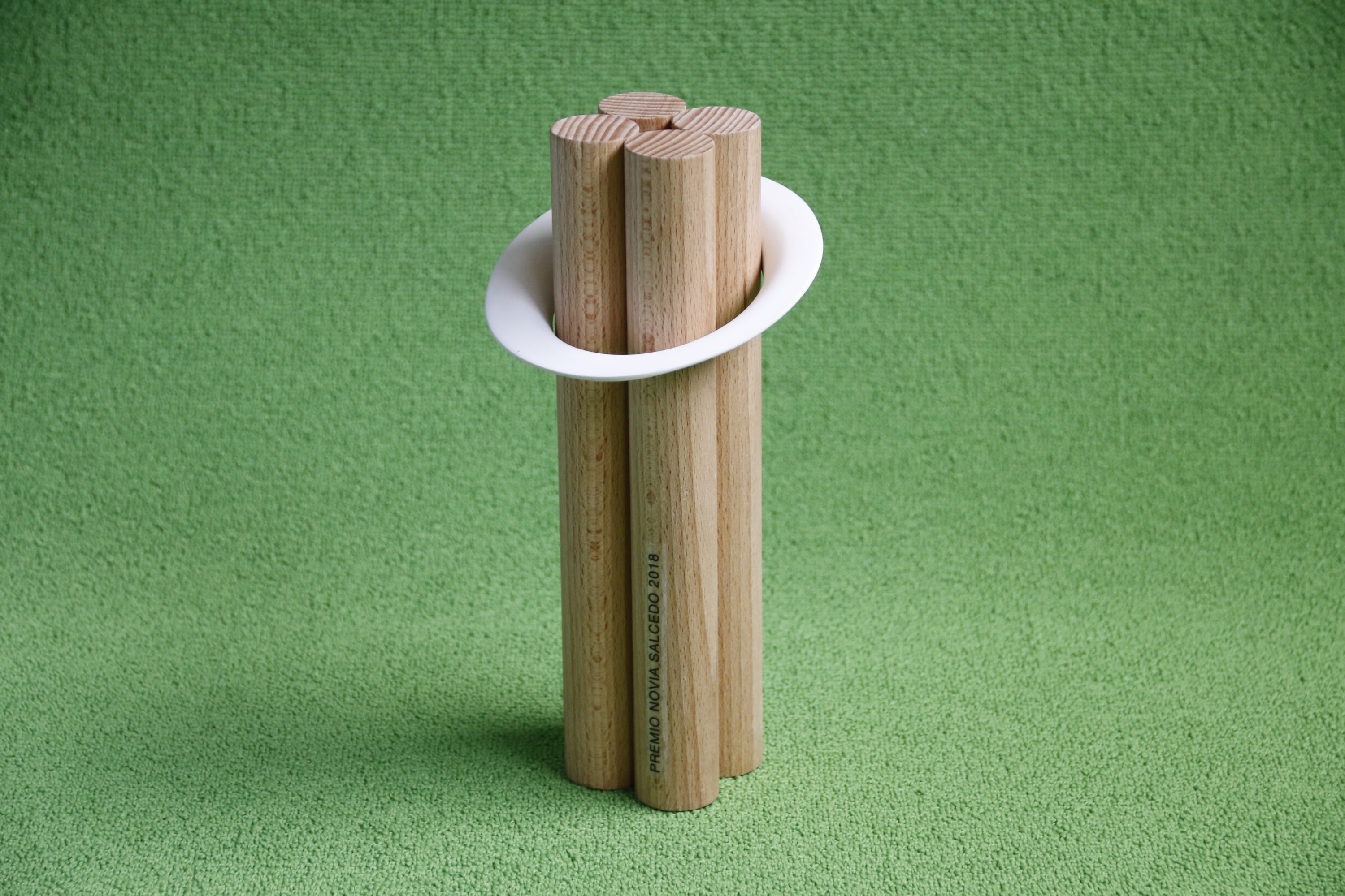 Como ya es tradición, el objeto escultórico que representa el Premio NoviaSalcedo, en cada edición tiene un diseño diferente. Éste es el resultado del Trabajo de Fin de Grado de un alumno de la facultad de Bellas Artes dela Universidad del País Vasco UPV/EHU.